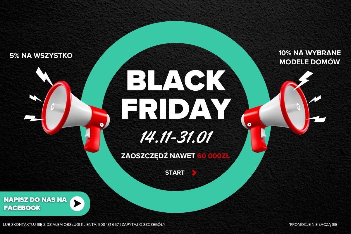 Marzysz o własnym domku letniskowym, domu drewnianym lub domu na zgłoszenie, który możesz użytkować całorocznie? Teraz jest idealny moment, aby spełnić te marzenia! Z okazji Black Friday przygotowaliśmy wyjątkową ofertę – -10% na wybrane domy pod klucz w superpakiecie!