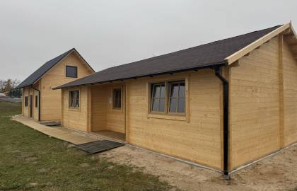 Promocja -10% Dom drewniany - BADEJ 540x1306 70 m2 (60 m2 + taras) POD KLUCZ Cena: 232 675 zł 258 528 zł