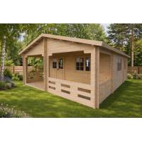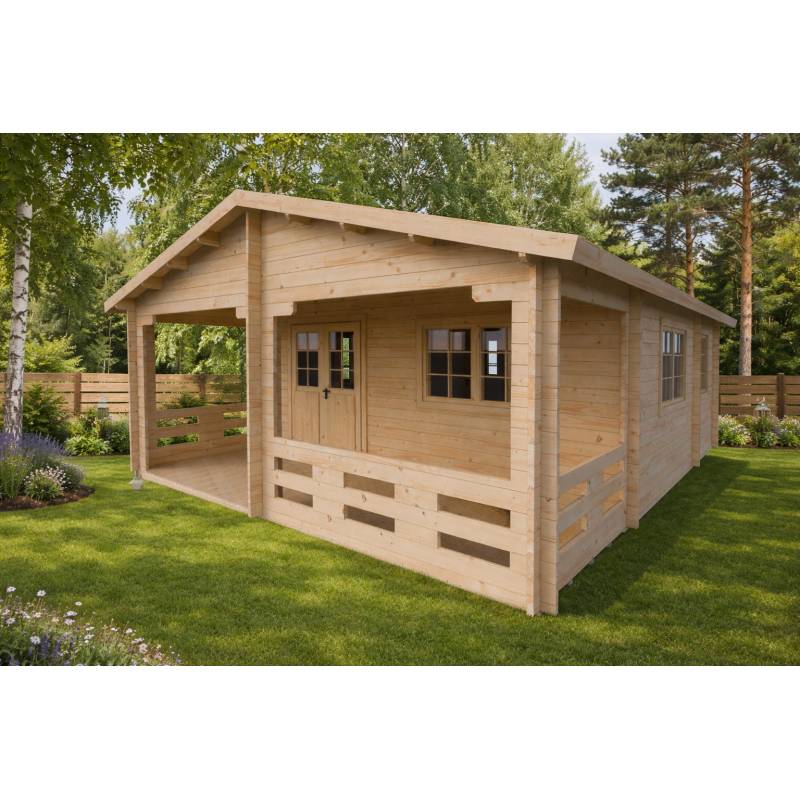 Domek całoroczny STOKROTKA 800×600 cm – przestrzeń 48 m² z bala 44 mm, taras i elegancja przez cały rok