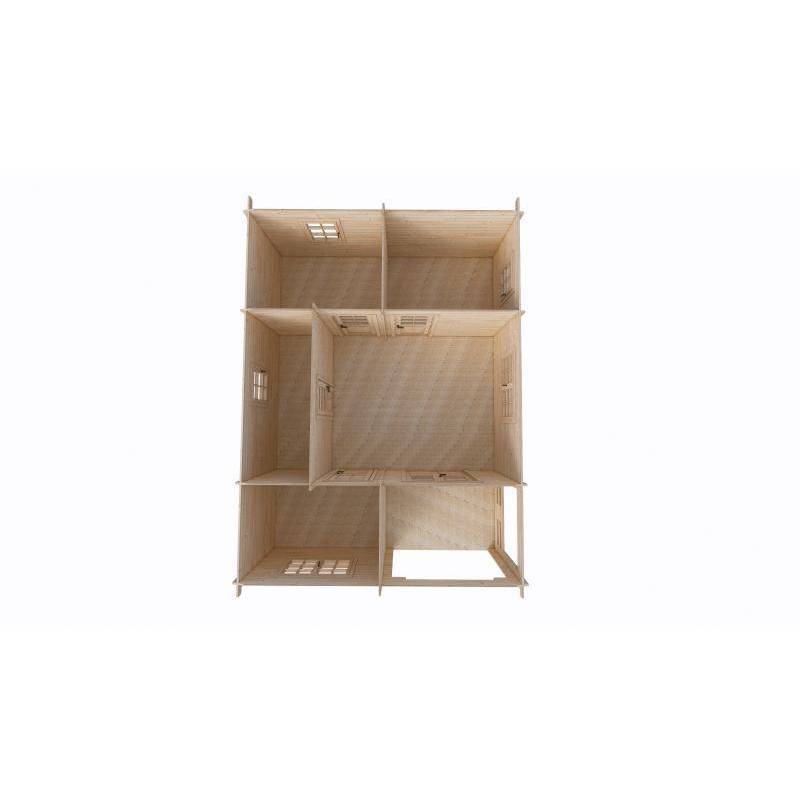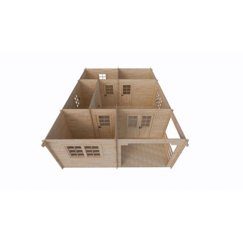 • domek drewniany z trzema sypialniami