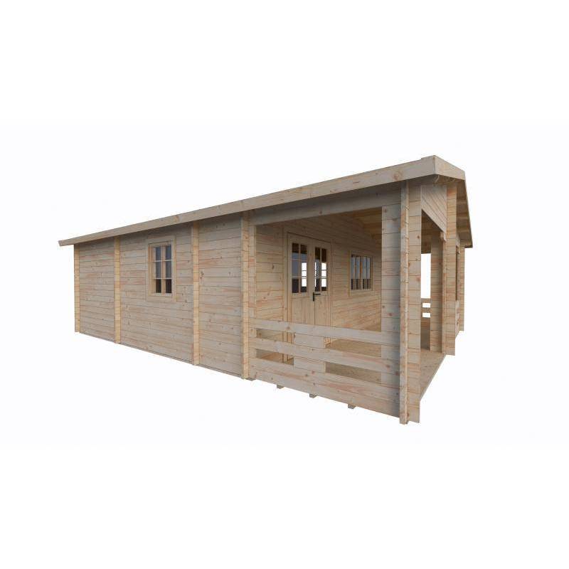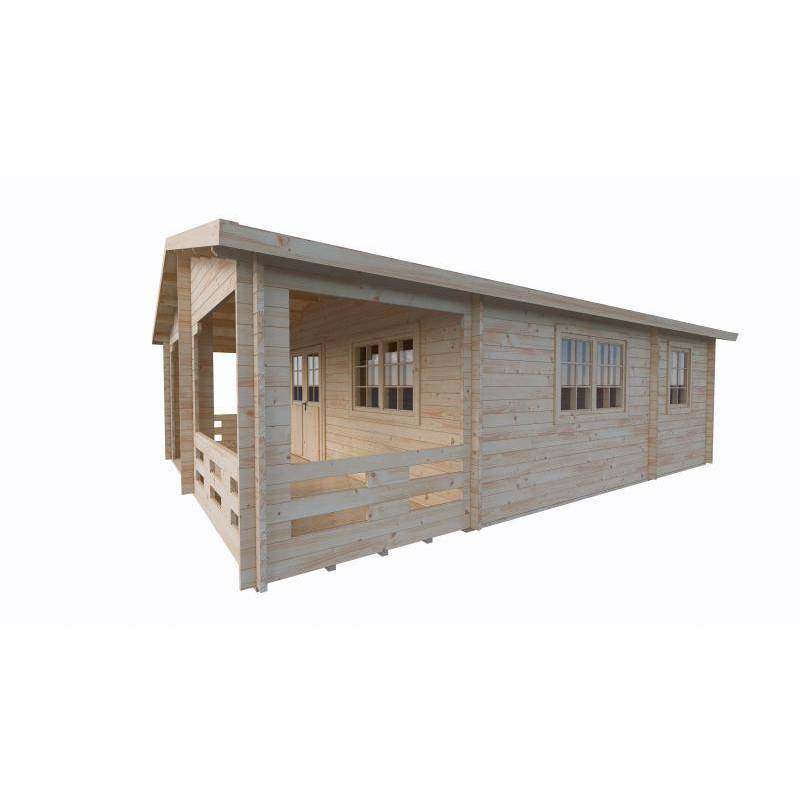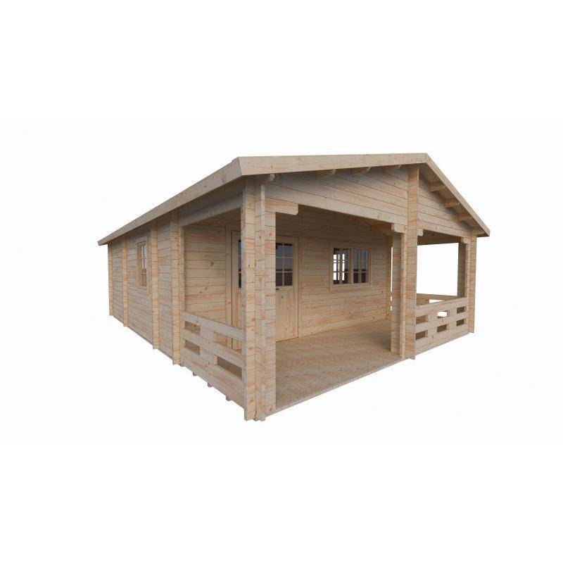 Domek całoroczny STOKROTKA 800×600 cm – przestrzeń 48 m² z bala 44 mm, taras i elegancja przez cały rok