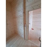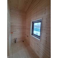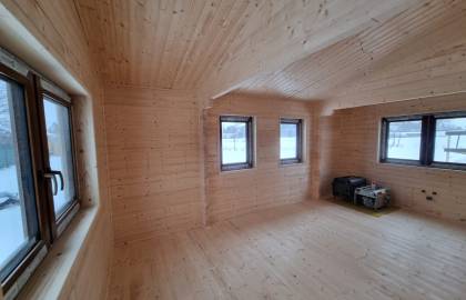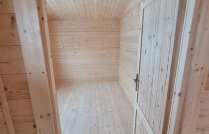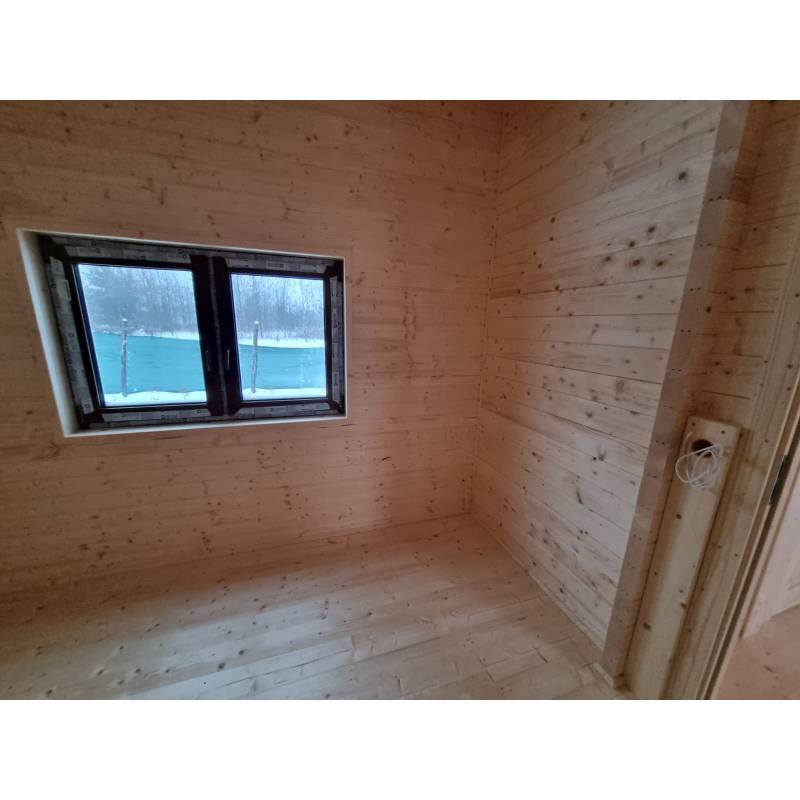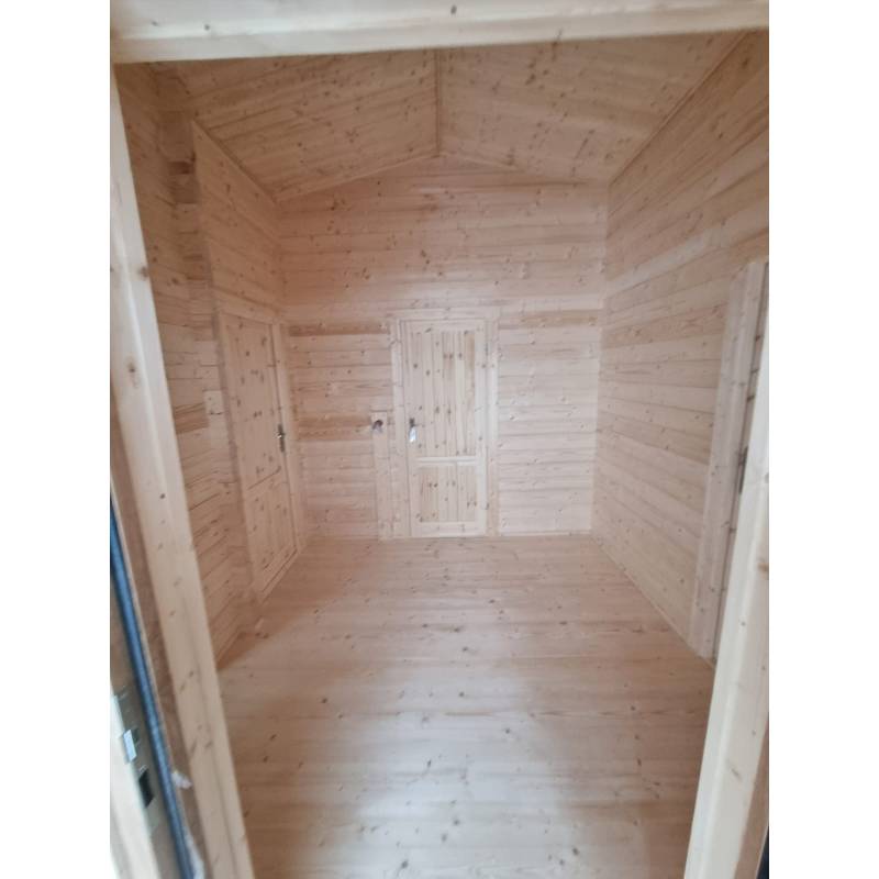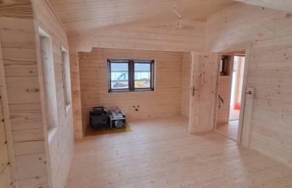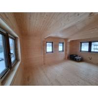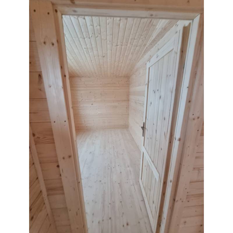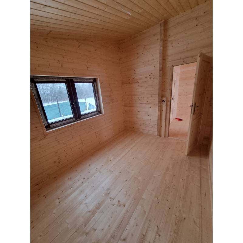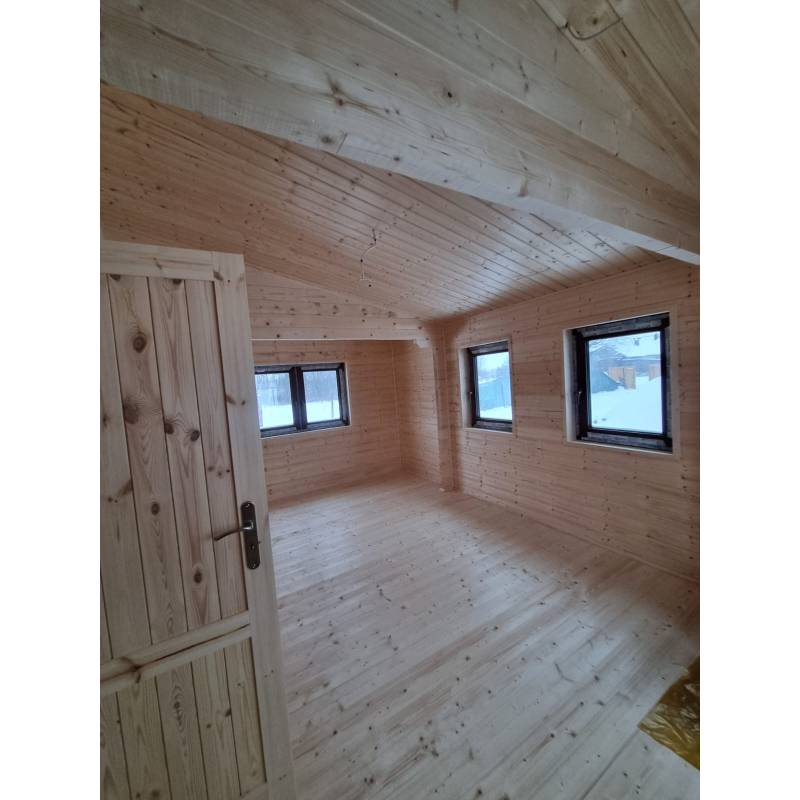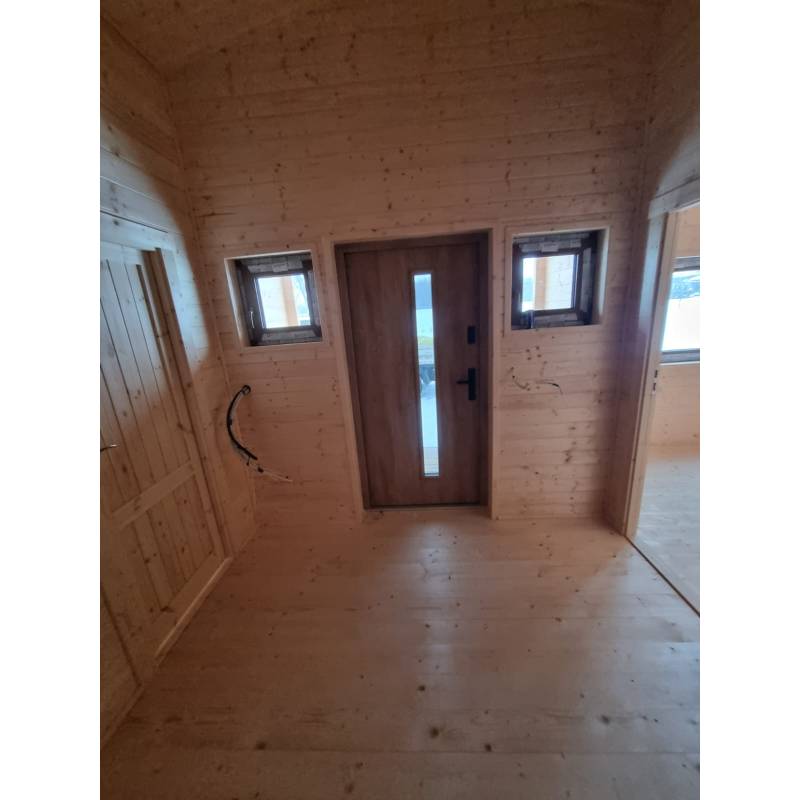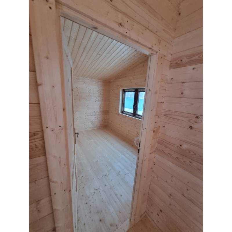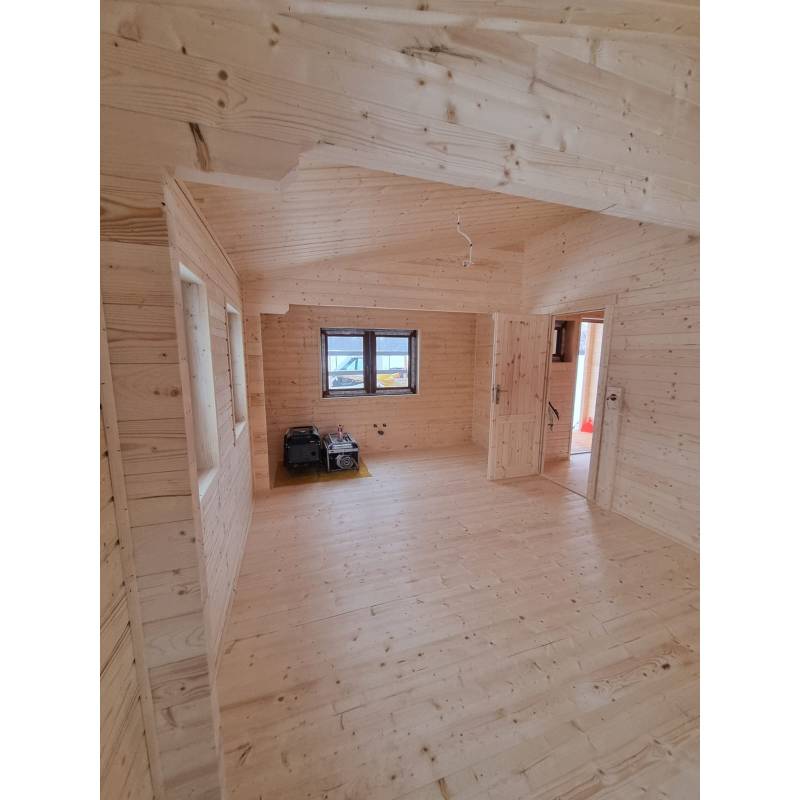 Konstrukcja została wykonana z wysokiej jakości drewna litego o grubości 70 mm, w technologii „na podwójne pióro i wpust”. Solidne baliki, czterostronnie strugane i osadzone na ciśnieniowo impregnowanych legarach, gwarantują trwałość i stabilność na lata. Ściany mają wysokość 242,5 cm, a w szczycie sięgają 353,4 cm. Dach o powierzchni 66,28 m² z kątem nachylenia 12,1° nadaje całości lekkiego i harmonijnego wyglądu.