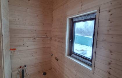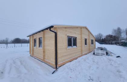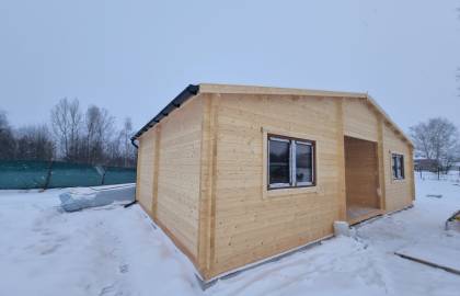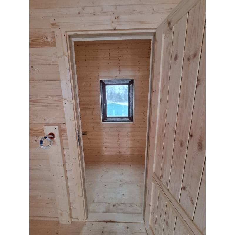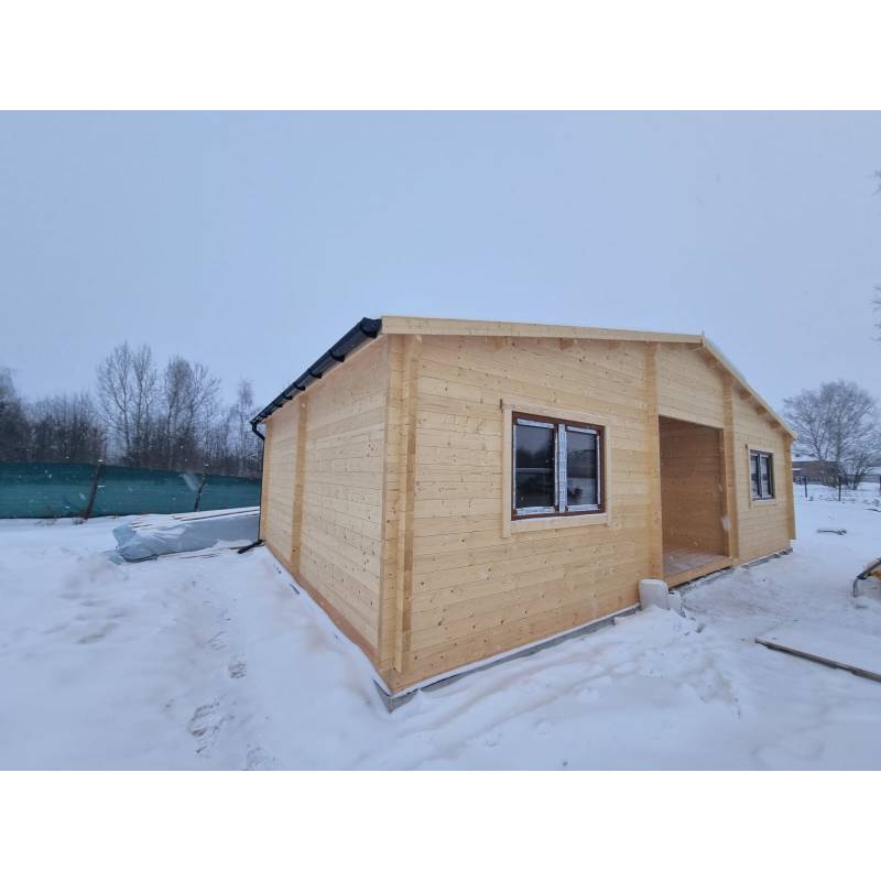 Konstrukcja została wykonana z wysokiej jakości drewna litego o grubości 70 mm, w technologii „na podwójne pióro i wpust”. Solidne baliki, czterostronnie strugane i osadzone na ciśnieniowo impregnowanych legarach, gwarantują trwałość i stabilność na lata. Ściany mają wysokość 242,5 cm, a w szczycie sięgają 353,4 cm. Dach o powierzchni 66,28 m² z kątem nachylenia 12,1° nadaje całości lekkiego i harmonijnego wyglądu.