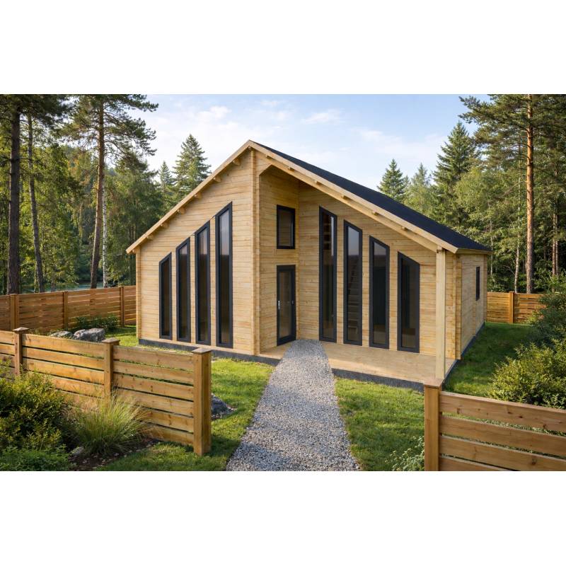 Drewniany domek Mytos to wyjątkowe miejsce, stworzone z myślą o komforcie, kreatywności i spokoju. Jego kompaktowe wymiary, 820x820 cm, i przemyślana powierzchnia 67,2 m2 oferują idealną przestrzeń do życia, pracy i relaksu.